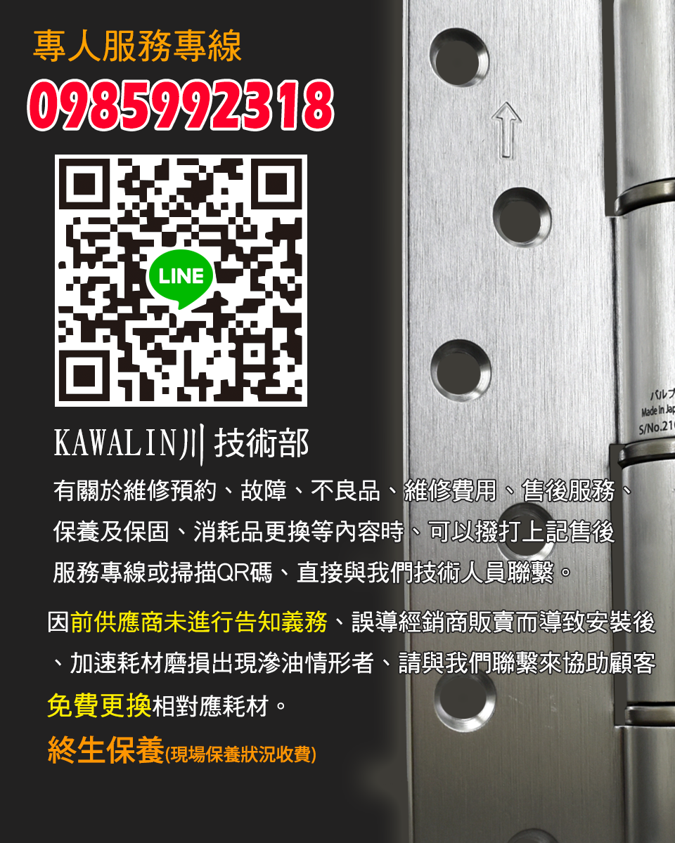 >>日本KAWALIN自動回歸鉸鏈-售後服務